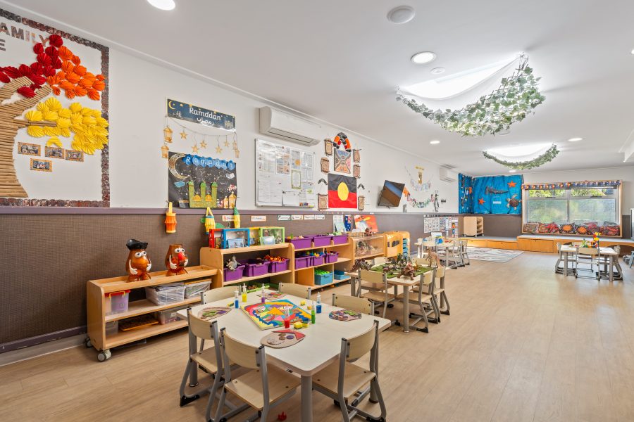 Our Lidcombe centre has been thoughtfully designed to create a calm, welcoming, and inspiring environment for young learners. From our light‑filled learning rooms to our purpose‑built indoor and outdoor spaces, every detail supports children’s curiosity, independence, and sense of belonging. Open, well‑organised areas allow children to move freely, explore at their own pace, and engage in meaningful play within a safe and secure setting.