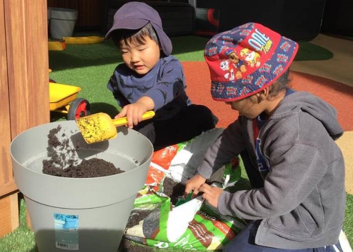 They then visited their centre’s garden bed to find a suitable spot to plant new seeds. Working together, they dug and prepared the soil which provided a fun sensory experience as they could feel and learn about the texture and dampness of the soil.